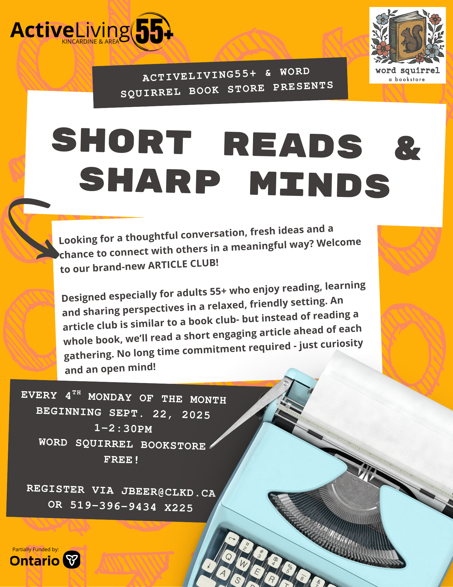 Email: info@clkd.ca or get in touch with ActiveLiving55+ Coordinator,